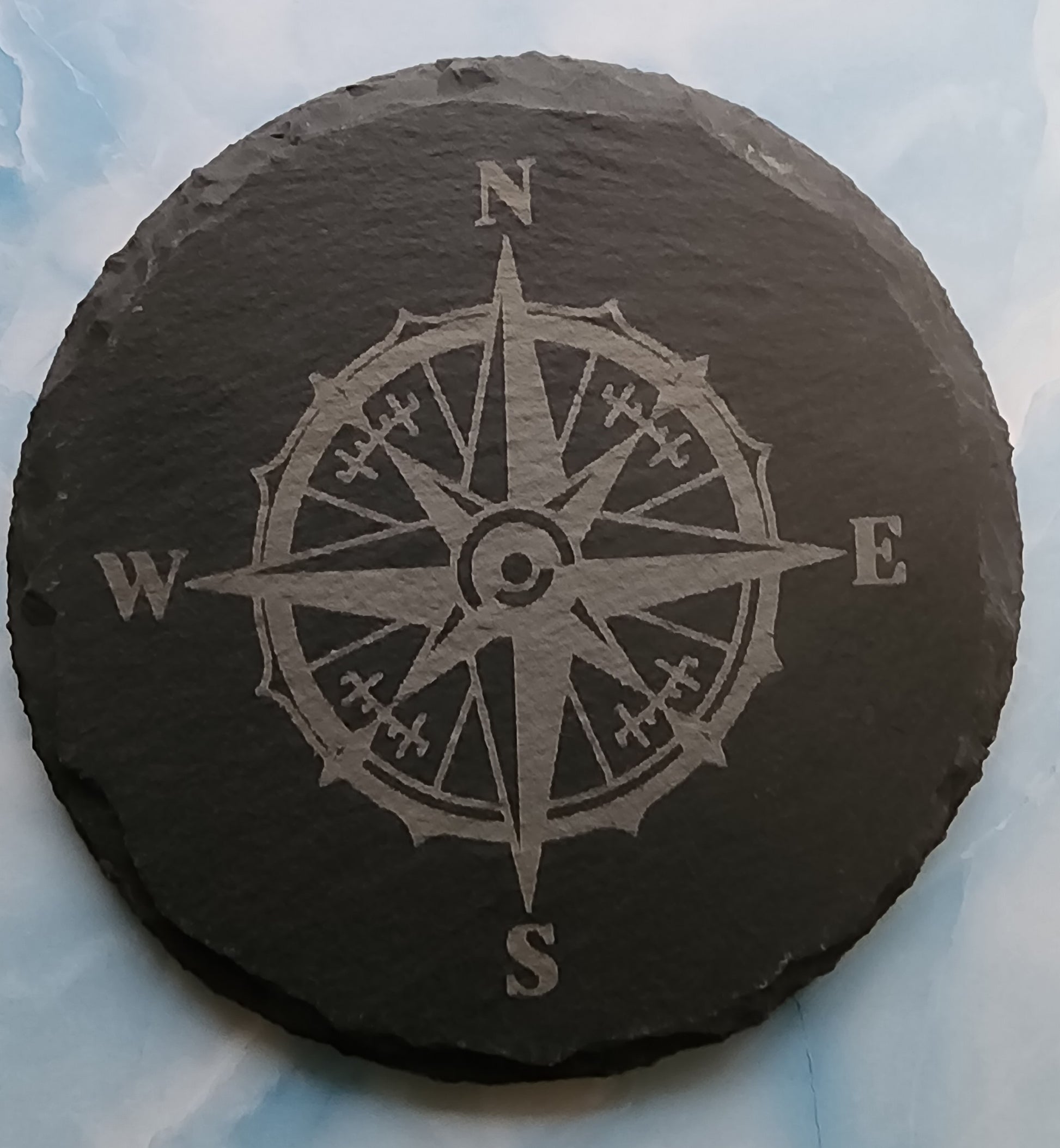 Set your drink down without the guilt trip. These handmade slate coasters arrive with a vintage compass rose etched into each 4-inch round surface and felt pads underneath to spare your tables. Nautical aesthetics, zero navigation required.